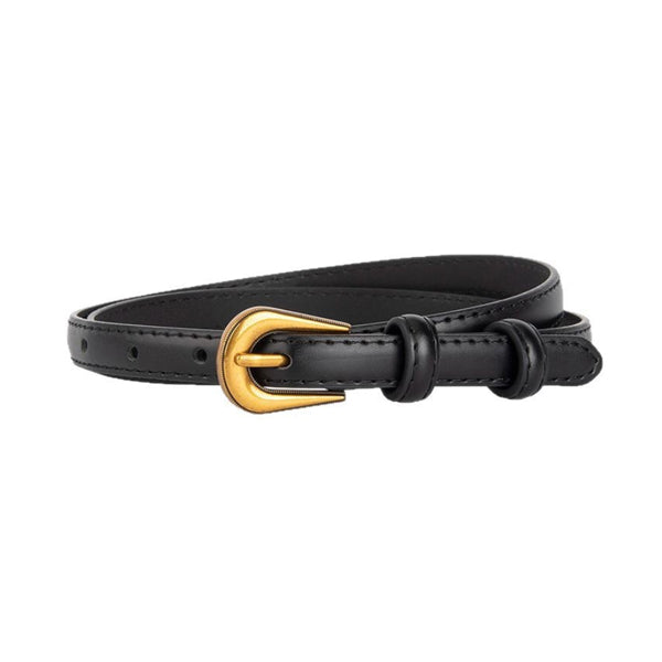 Black Women's Leather Belts with Gold Buckle Belt 黑色女士金扣皮帶 KCBELT1160