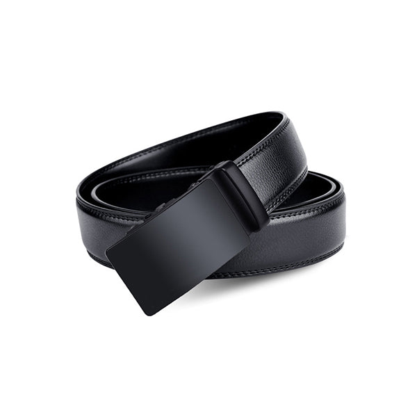 Black Men's Leather Ratchet Belt with Automatic Buckle 黑色男士真皮自動扣皮帶 KCBELT1156