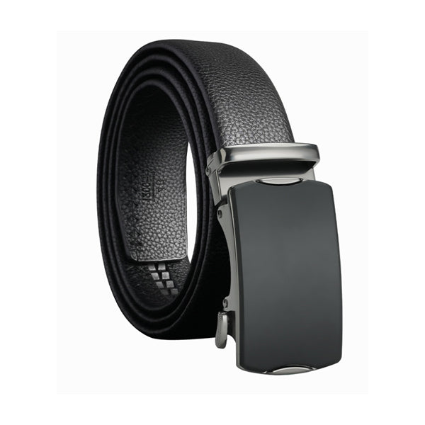 Black Men's Leather Ratchet Belt with Automatic Buckle 黑色男士真皮自動扣皮帶 KCBELT1163